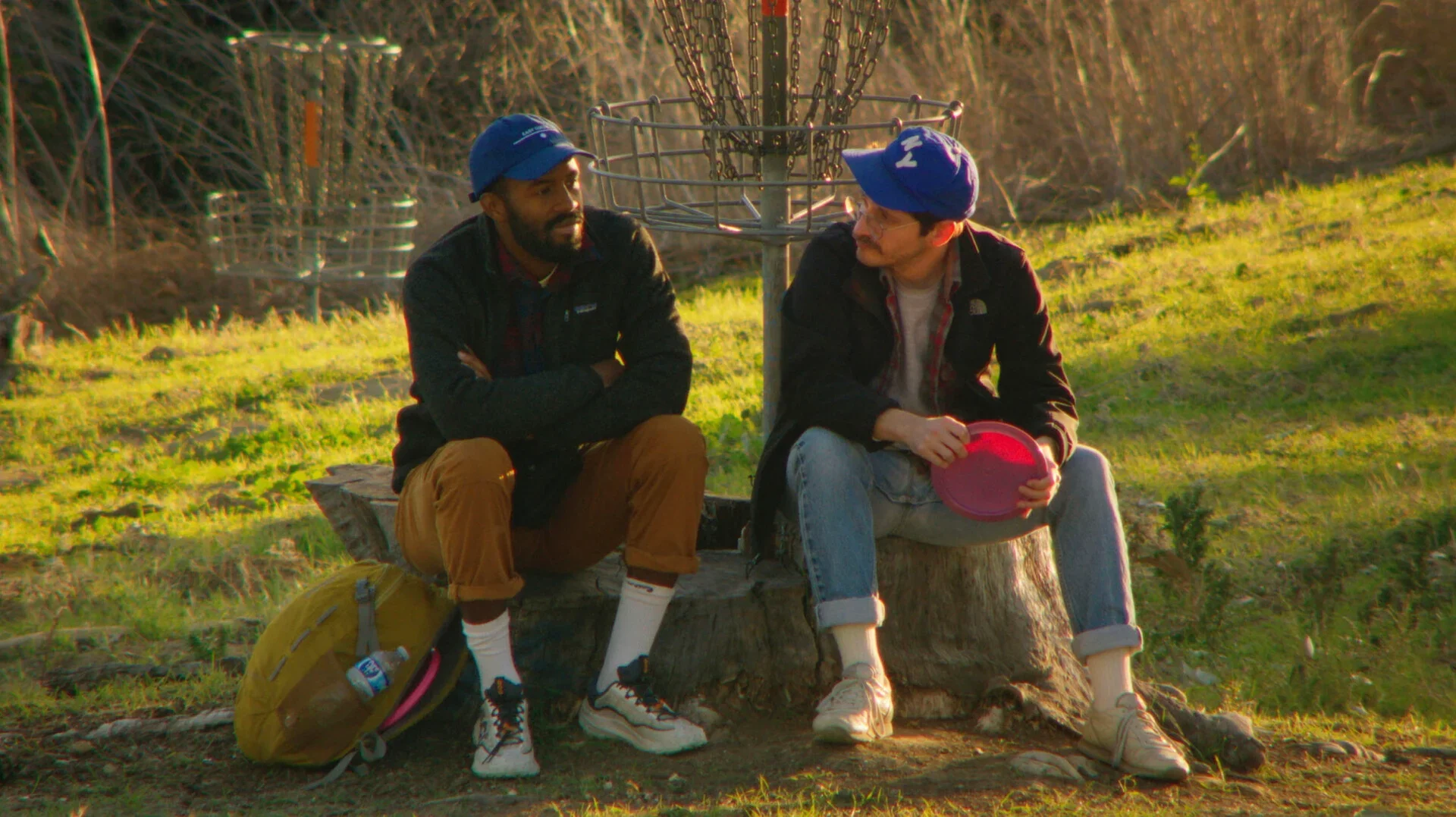 2 Guys unfolds at an oddly specific meeting point on a disc golf course, where two strangers await separate Tinder dates. Directed by Marissa Goldman, the short film blends surreal comedy with an intimate examination of modern dating, toxic masculinity, and social anxiety.