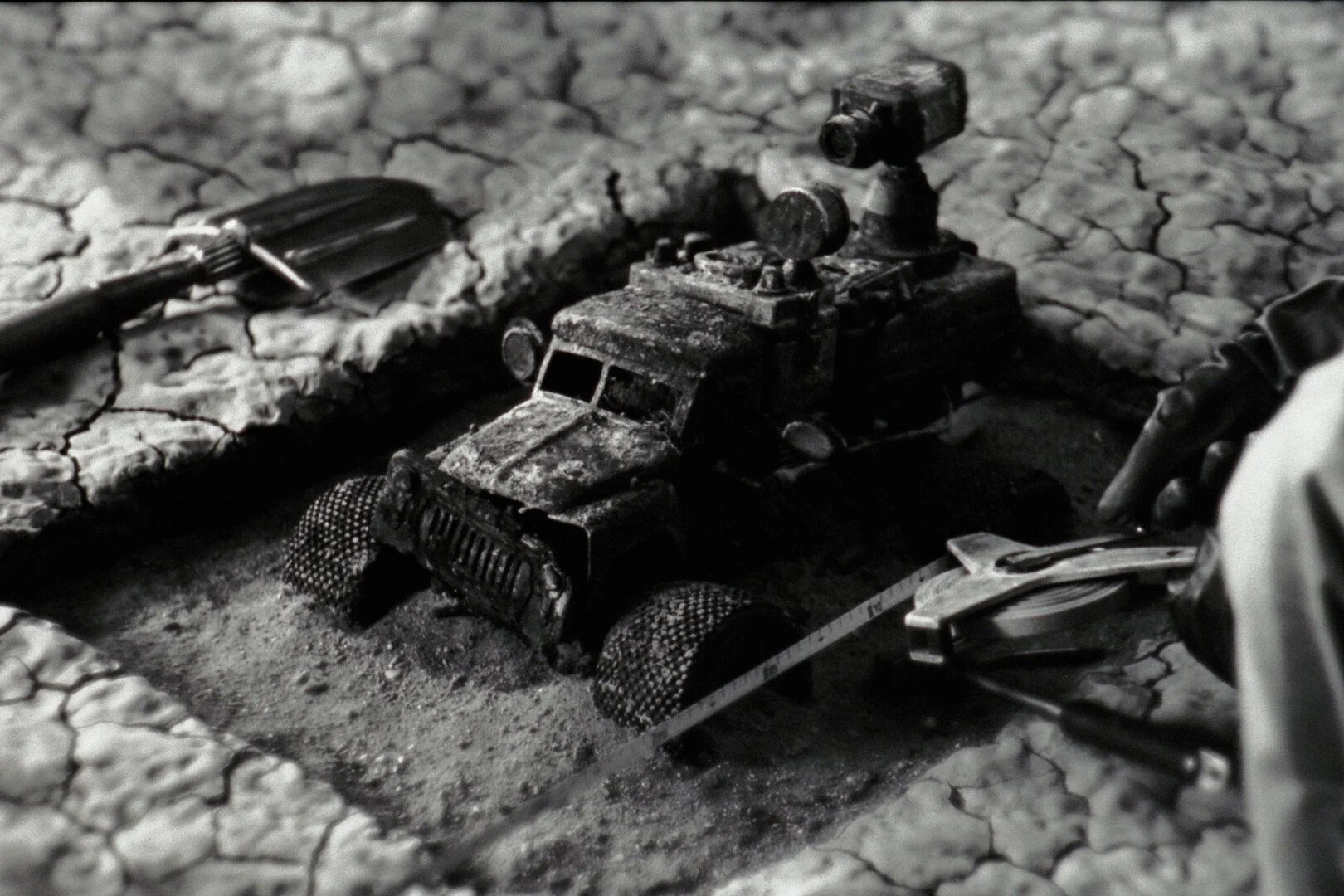 Wind, Snow, and Heat follows a survivor of a nuclear disaster searching for his family using a self-made RC car. What drew you to this small, personal gesture within such a large and devastated world?